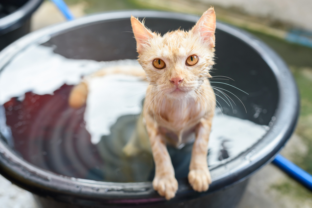Мытье кошки и обработка от паразитов