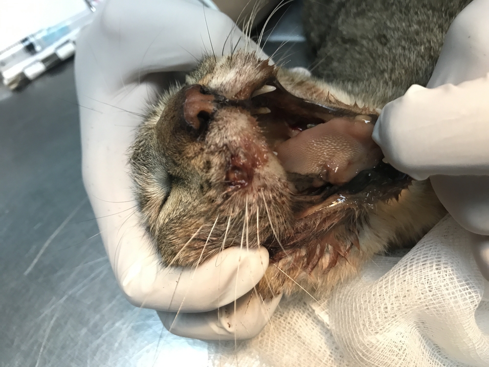 Подобную картину можно наблюдать при случайном попадании в рот острых предметов, например, во время подвижных игр или при профилактических или лечебных манипуляциях во рту, проводимых кошачьими стоматологами.