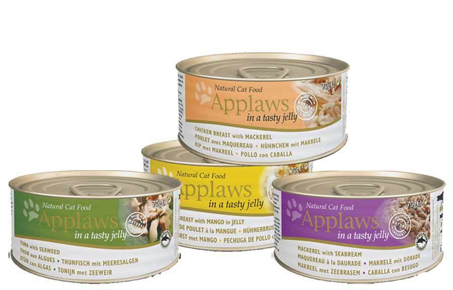 - Консервированный корм Applaws in tasty jelly – кусочки с фруктами в желе, в жестяных банках по 70 г.