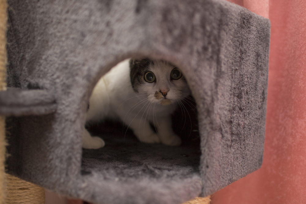 Так что для хорошего душевного равновесия кошки не поленитесь поставить ей домик или коробку. Она отдохнёт там, сколько ей требуется, и в хорошем расположении духа будет снова радовать вас играми и просто своим присутствием.