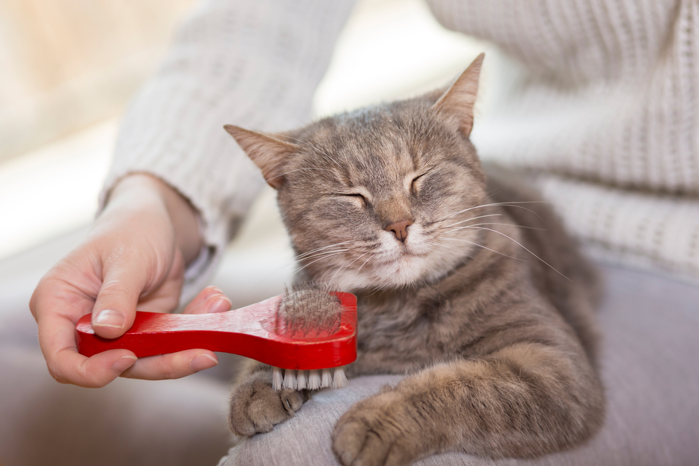 После этого отмершие остевые волоски убирают при помощи щётки из натуральной щетины или рукавички с пупырчатым резиновым покрытием, массируя кошку против шерсти.